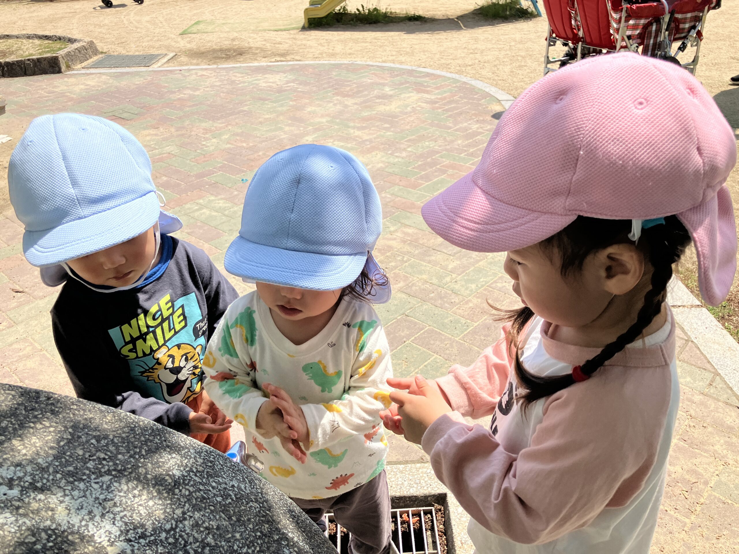 朝までの雨が止んで、空を見上げていた子どもたちも大