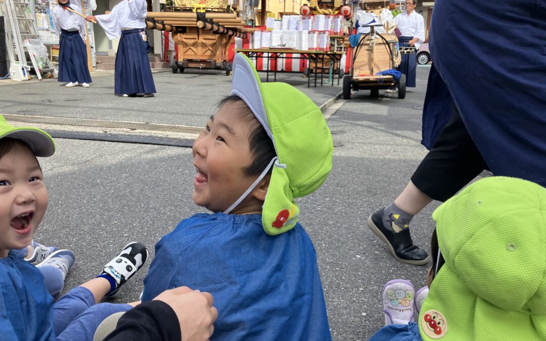 ニコニコで楽しむ子やビックリしちゃた子、祭囃子に合わせてリズムをとる子🎶
