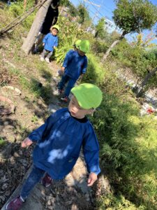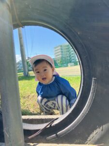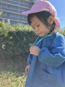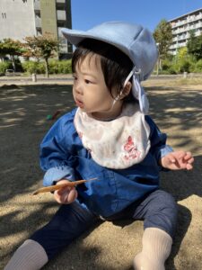 葉っぱを見つけたよ🍂不思議な感触…握ると音が聞こえるね。おもしろ~い😊