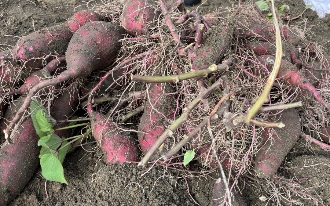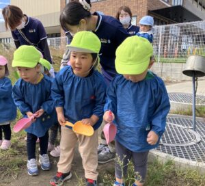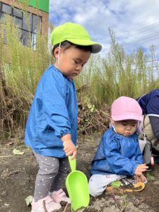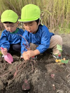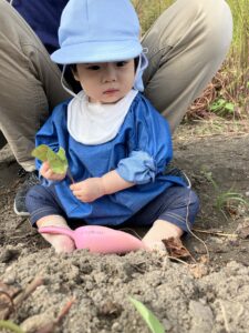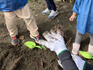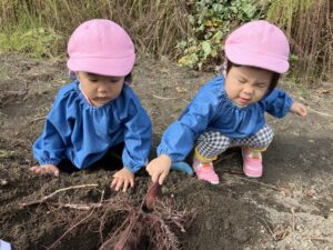 みんなでお芋ほり、がんばるぞ~。エイエイオ~‼