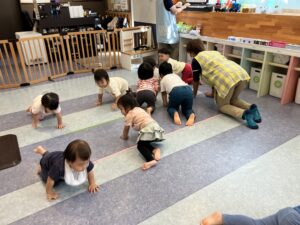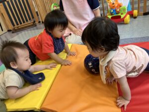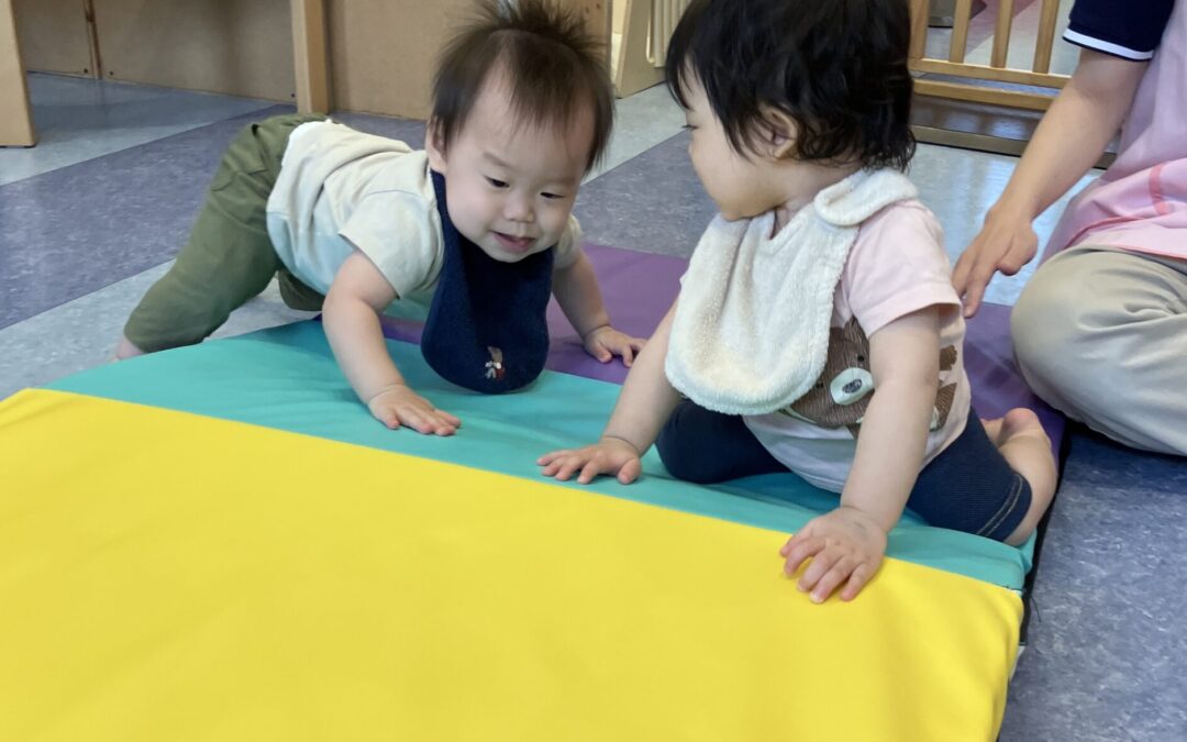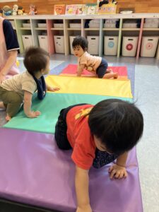 マットのお山をお友達と一緒に登ったり下りたり、、、。