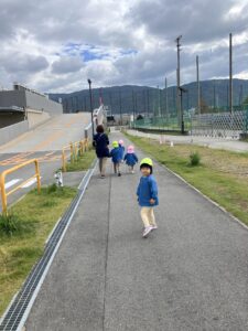天気が良いと歩くのも楽しく、足取りも軽い子どもたち🎵
