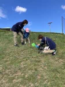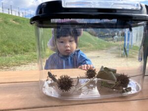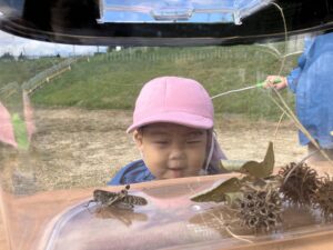 沢山捕まえて虫かごに入れると、子どもたちは虫かごの中の虫に興味津々でした🎵