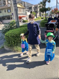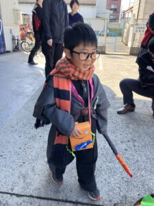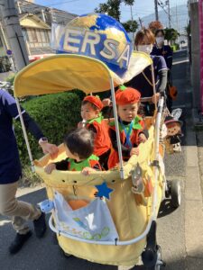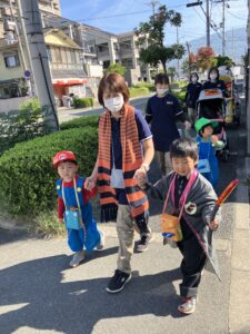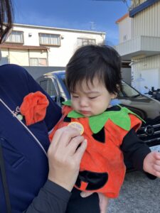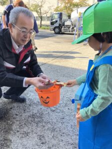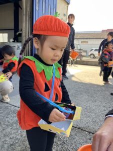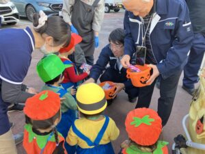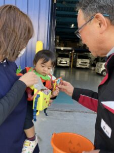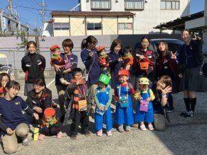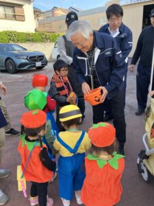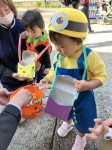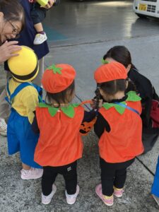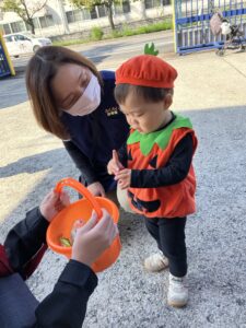 『トリックオアトリート』と言ってお菓子をもらい、「ありがとう」もきちんと言える子どもたちです🎵