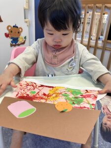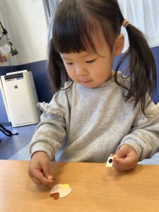 かに組は、手形をとったり、パーツ貼りをしましたよ!
