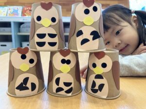 まんぼー組は、紙コップで「ふくろう」を作りました🎵