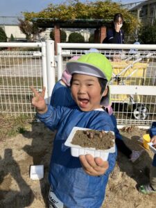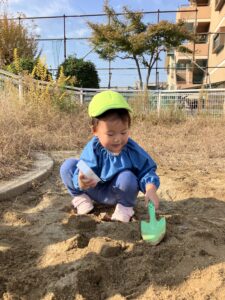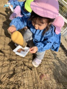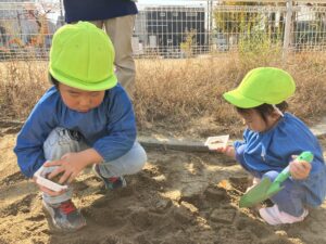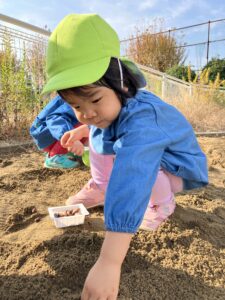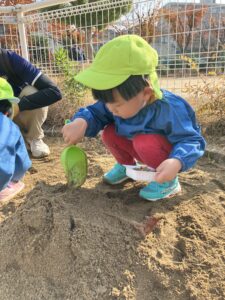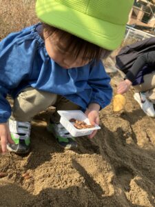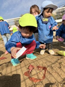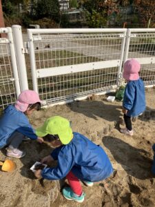 砂場では宝探しが開催されました✨どんぐりを見つけて子どもたちは大喜び☺