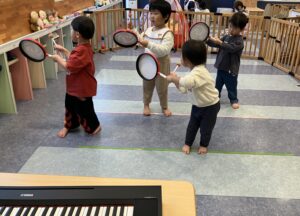 くじら組のお友達は♪ドレミの歌♪に合わせてハンドドラムをたたいたよ♪