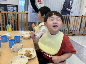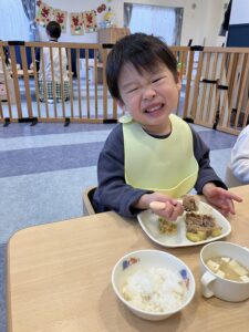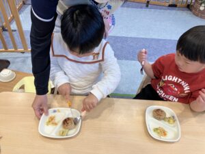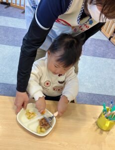 くじら組のお友達はナイフを使って自分でカットしてみたよ🔪