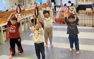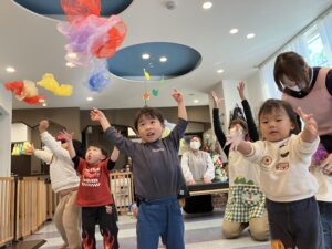 クリスマスの曲に合わせて楽器遊びをしたり、体を動かしました♪♪