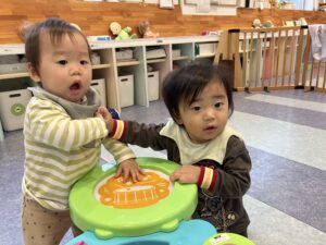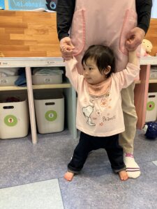 お部屋では先生と手をつないだり押し車でたくさん歩いたよ🎵