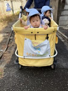 小さいお友達は立ち乗りカートに乗ってお散歩に行きました!
