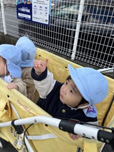 大きな車をみつけて、指さしで教えてくれるお友だちもいました。
