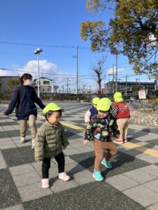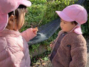公園にお散歩に行って、木の実や落ち葉拾いもしましたよ!
