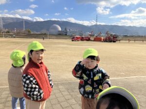 働く車が大好きな子どもたち、目を輝かせて、消防車を見ていましたよ😊