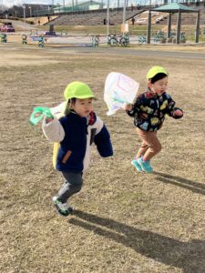 元気いっぱい走って、手作り凧が高く上がったよ!!