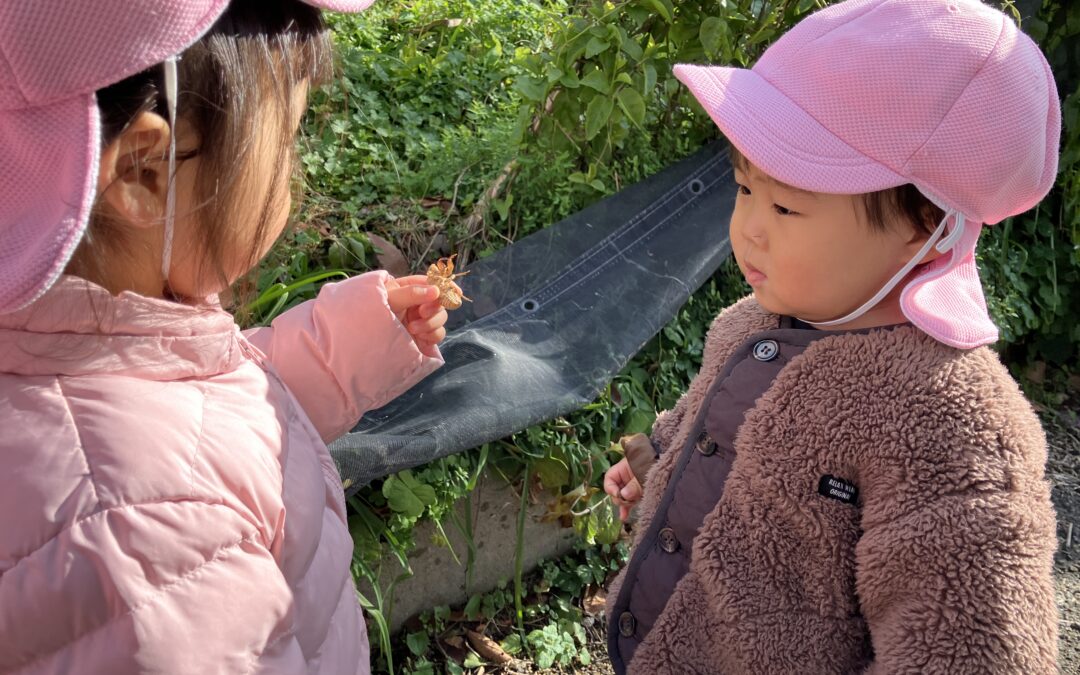 公園にお散歩に行って、木の実や落ち葉拾いもしましたよ!