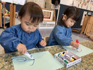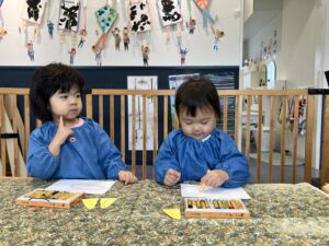クレパスや絵の具の色を自分で選んで製作したよ🖌