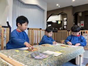 ペンやのりを使って取り組みました🎶