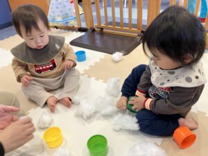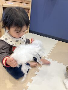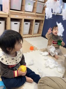 綿遊びを楽しんで雪だるまを作ったよ⛄