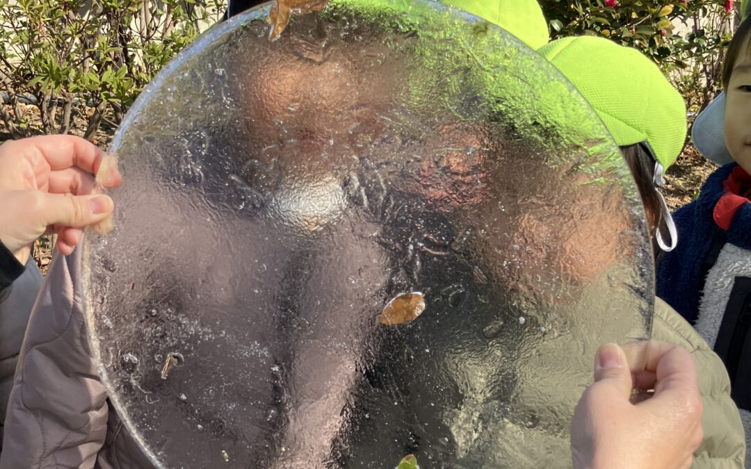 探検をしていると大きな氷を発見!触ったり透かして見たり面白いね💕