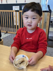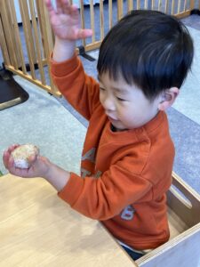 いっぱい遊んだ後はみんなで『おにぎり』を作ったよ🍙「おいし~💕」