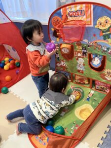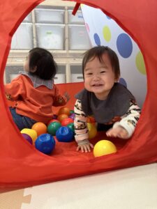 かに組さんは、室内でボール遊びをして過ごしました😊🎵