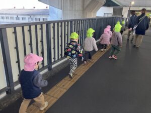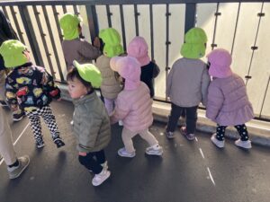まんぼー組とくじら組のお友だちは、しっかり防寒対策をして吉田駅までお散歩に行きました🚃