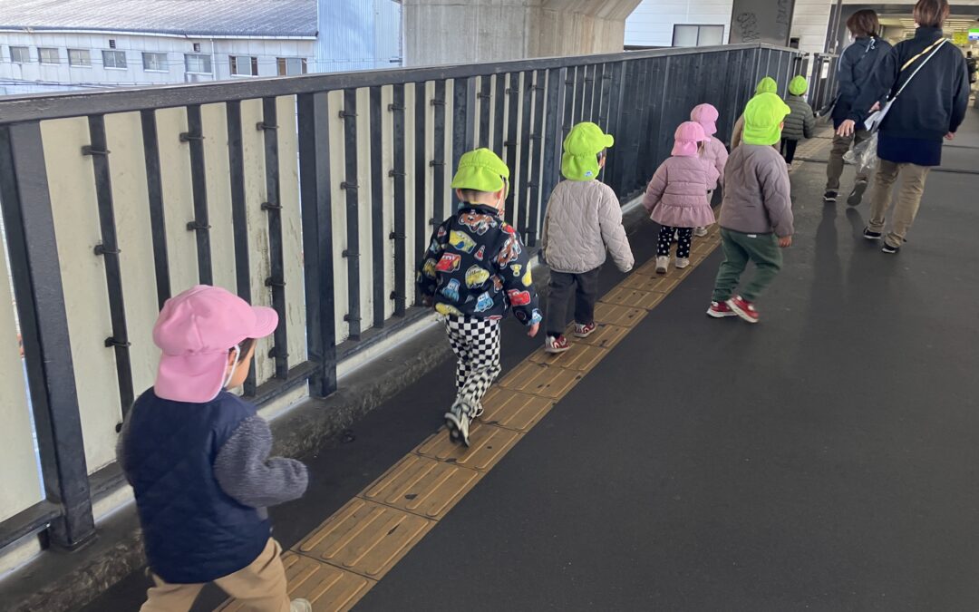 まんぼー組とくじら組のお友だちは、しっかり防寒対策をして吉田駅までお散歩に行きました🚃
