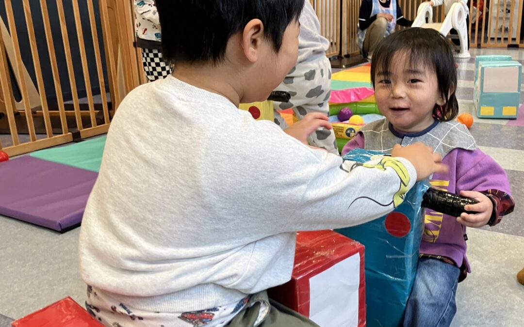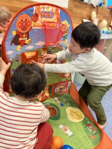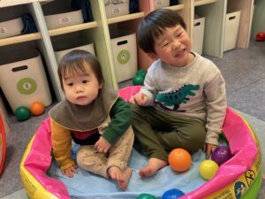 ボール遊びをしていると「もうすぐ鬼くるんちゃうん?」「豆まきの練習しよ~!」と声があがり、みんなで