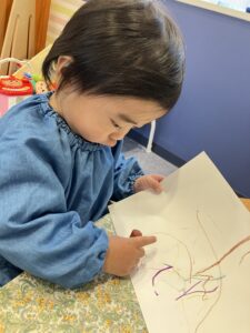 毎月描いてるクレパス画。体力がついてきて筆圧も強くなったり、ぐるぐるまるが描けるようになったり、毎月成長があります😊