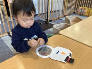 製作では「雪だるまつくろ~🎶」と歌いながら雪だるまを作り、お買い物では頼まれていた商品を探して見つけることが出来ると喜ぶ子どもたちでした😊