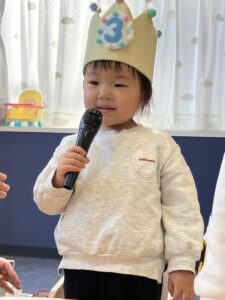 マイクをもって、大きな声でお名前も言えましたよ🎵さすがくじらぐみさん😊