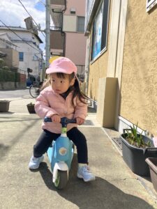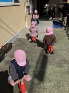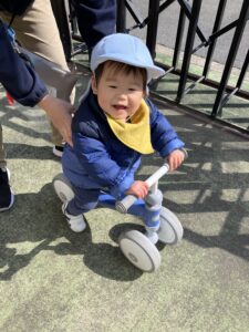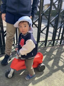 戸外では大好きな車のおもちゃやキッズバイクを楽しんだよ✨