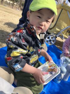 お弁当も作ってもらい公園まで届けてもらいました!大喜びであっという間に完食でしたよ🥄
