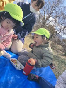 今日はお天気が良かったけれど、少し強い風が吹いていて各クラス子どもたちの体調を見ながら過ごしました。
