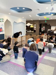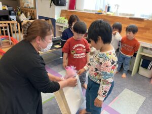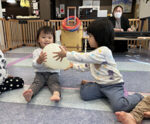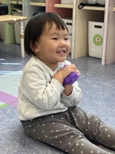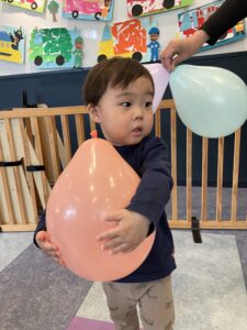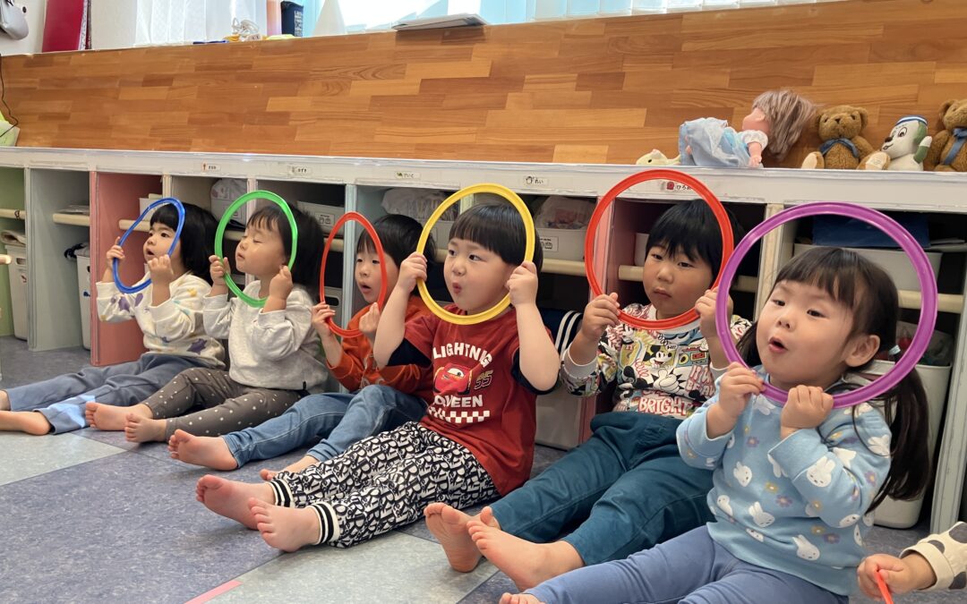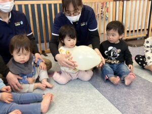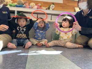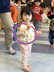 風船を回したりフープで遊んだりふれあい遊びも楽しみました🎈