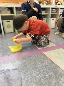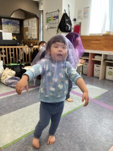 布でおばけになったりお花を作ったりお洗濯ごっこも楽しんだよ✨