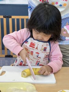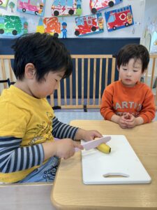 バナナのカットにも挑戦!とってもうまくなったね☺🍌