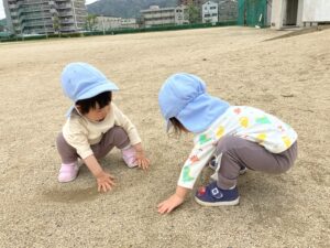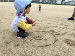 地面にお絵描き。何を描こうかな?