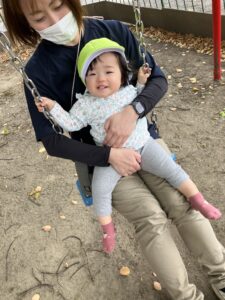 先生と一緒にブランコ、気持ちいいな~😊