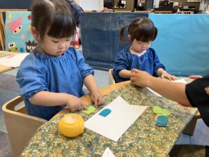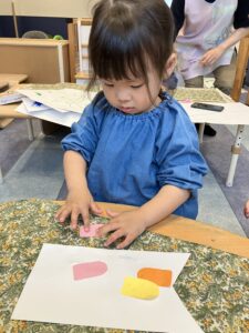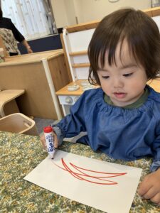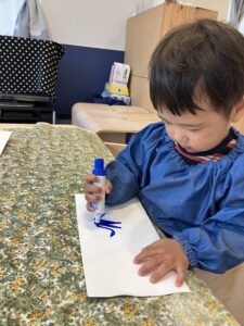 くじら組はのりを使ってウロコを貼りましたよ✨