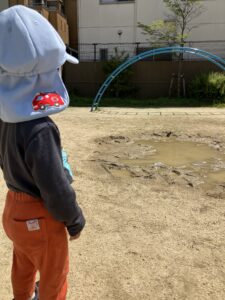 「アッ!水たまり」と次の瞬間、片足が入っていました…😅