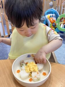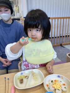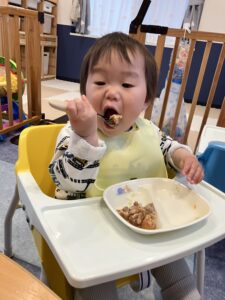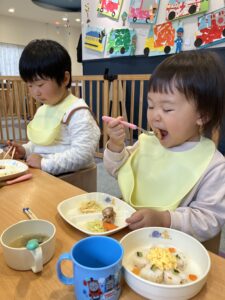 大きなお口を開けて美味しい給食を頂きましたよ!