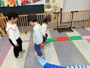 お部屋ではいす取りゲームやサーキット遊びに夢中でした!