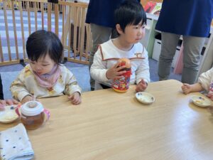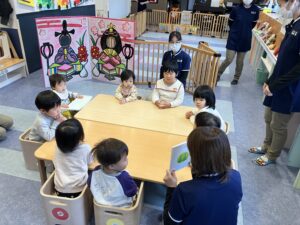 絵本を見たりお歌をうたったり、おやつにはひなあられやひなボーロを食べてみんなニコニコです☺