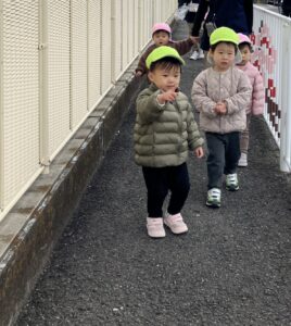 大きなお友達は、お外にも出て冷たい風を感じながら歩いたよ!